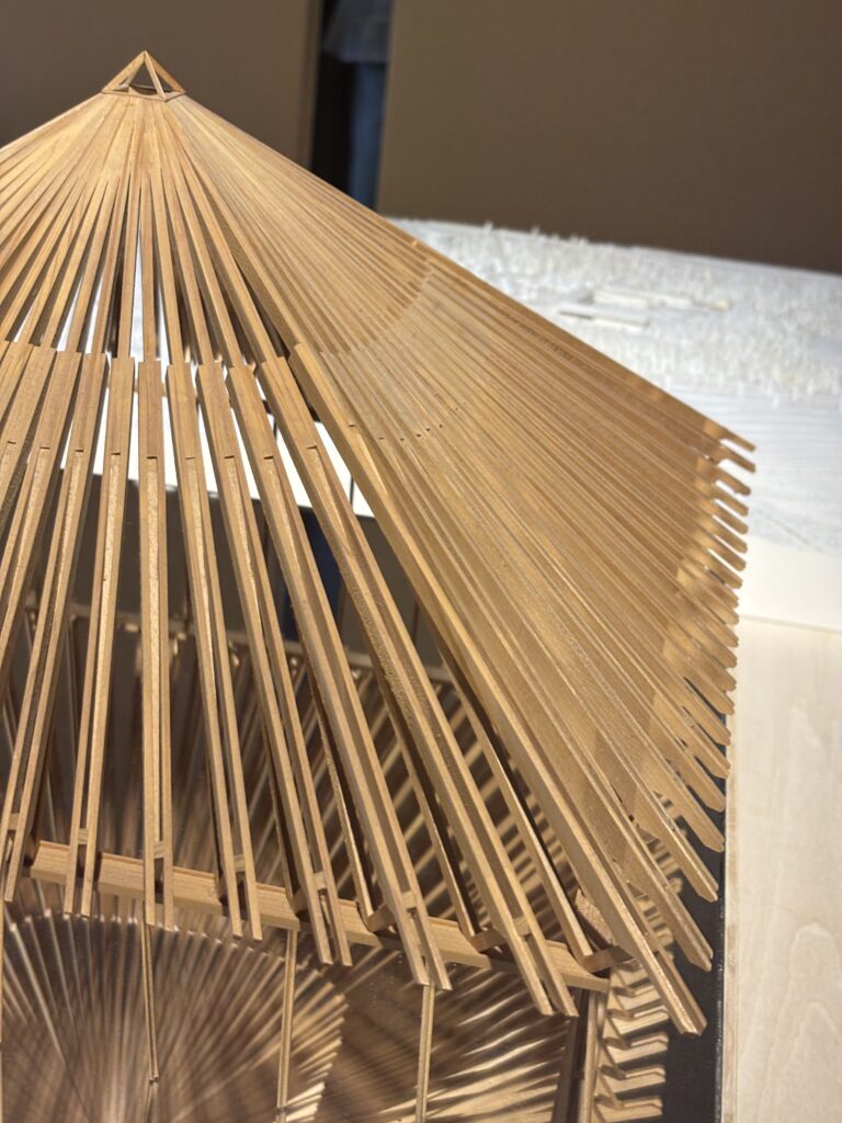 模型が成り立つということは、構造として実現可能なんだそう(通っていた大学で教授がお話してました)。軸組模型を製作するときには、筋交いやブレースの数、向き、位置などで安定感、強度、ぐらつきなど造りながら感じることが多かったなと思います🙄ここに展示されているものの中にはプロポーザルで建築にいたらなかった案も多くあり、提案の時点での造り込みの完成度に感動です🤩