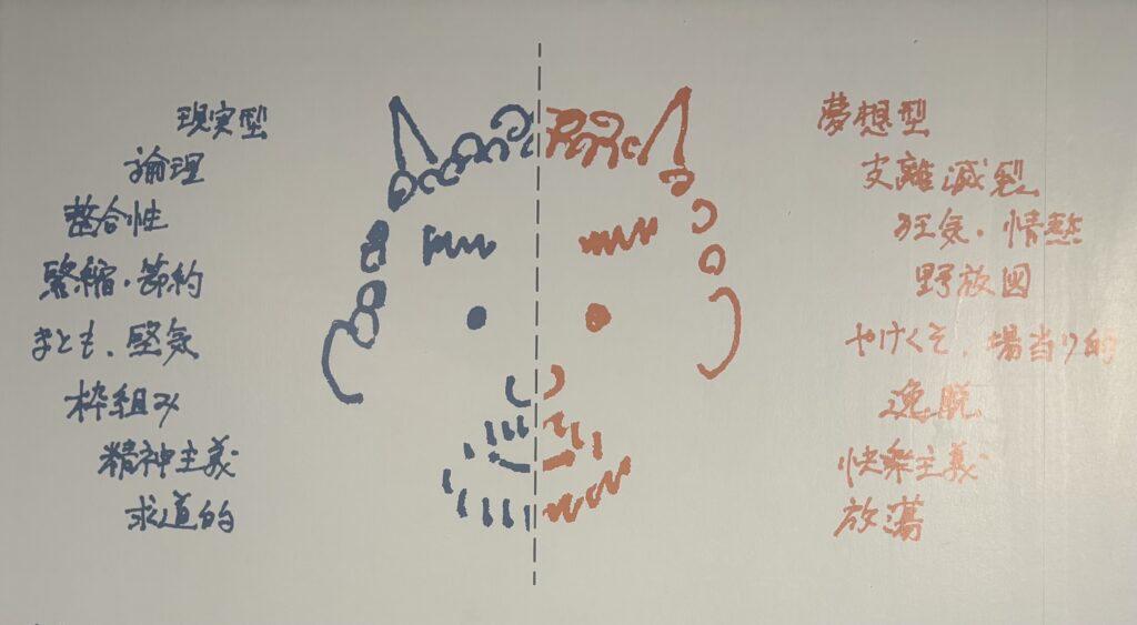 会場に入ると出迎えてくれたのは、赤鬼と青鬼🤩この二人は島根県芸術文化センターの展覧会で、建物ができるまでの間には都度悩みや格闘、思考と取り組みがあることを、伝えるツールの一つとして取り入れられたようです。赤鬼と青鬼の自画自賛や葛藤、愚痴など人間味のあるやりとりが作品ごとに繰り広げられていて、最初から最後まで楽しめる展覧会でした✨